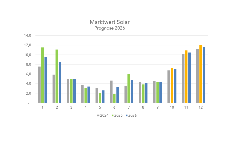 Die Prognose für den Marktwert Solar im Jahr 2026 deutet auf einen weiteren Rückgang hin. Studien gehen davon aus, dass der Marktwert für Solarstrom bis 2028 um mehr als 25% fallen könnte. Für 2026 wird allgemein erwartet, dass der Marktwert weiterhin rückläufig ist, was die Wirtschaftlichkeit von Photovoltaikanlagen beeinflusst.